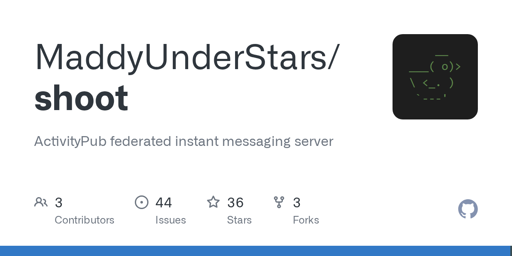 arrow-up112arrow-down1external-linkGitHub - MaddyUnderStars/shoot: ActivityPub federated instant messaging serverplus-squaregithub.comTeknevra@lemmy.worldEnglish · 1 month agomessage-square9linkfedilink