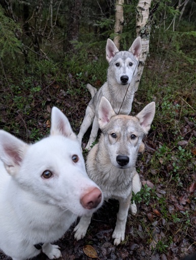 They are three, Chacha is probably running somewhere around. Sisu is the only puppy, that her mom Monkey had almost three years ago. It was quite cool, as Monkey really love Sisu and they raised the puppies together.
