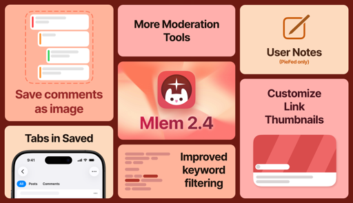 Mlem 2.4 is here! We’ve expanded our PieFed support, plus added a bundle of new features for you to use.