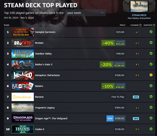 I can’t help but question the accuracy of this list, since the Steam Deck doesn’t seem to log hours for games played in offline mode correctly. I easily have hundreds of hours unaccounted for. It will also add played time for hours spent in standby with a game running, but then wipe all of the hours played and in standby once I connect to the internet.