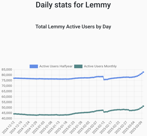 arrow-up12.48Karrow-down1imageThere's a clear up tick on daily users growing and we've crossed the 50k line as of yesterday! LETSSS GOOO!locklemmy.worldcm0002@lemmy.world to Fediverse@lemmy.worldEnglish · 9 months agomessage-square629linkfedilink