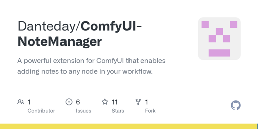 arrow-up118arrow-down1external-linkDanteday/ComfyUI-NoteManager: A powerful extension for ComfyUI that enables adding notes to any node in your workflow.github.comEven_Adder@lemmy.dbzer0.comM to Stable Diffusion@lemmy.dbzer0.comEnglish · 8 months agomessage-square2linkfedilink