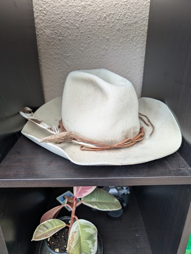 From my great uncle, this hat was made in calgary around 100 years ago and it’s done the chilkoot trail, paddled to dawson city, has surely been stomped into cow shit before, etc