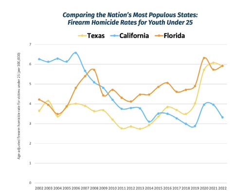 arrow-up1214arrow-down1imageCalifornia's youth gun homicide rate dropped 50% between 2006-2022. Over the same period, Texas's rate rose 49% and Florida's rate rose 23%lemmy.worldDavriellelouna@lemmy.world to Mildly Interesting@lemmy.world · 6 months agomessage-square13linkfedilinkfile-text