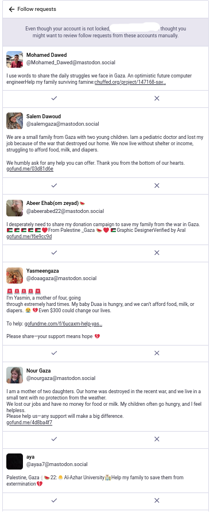It’s kind of impossible to tell. With the amount of scammers out there, it’s extremely unlikely. Why exactly would Gazans 1. know English well and 2. be on Mastodon?