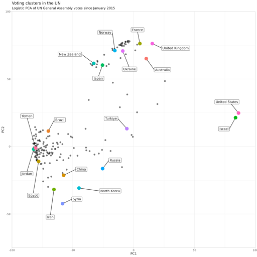 case_when@lemmy.world to Data is Beautiful@lemmy.worldEnglish · 1 year ago[OC] Voting clusters in the UN General Assembly 2015-2025plus-squarelemmy.worldimagemessage-square0linkfedilinkarrow-up11arrow-down10